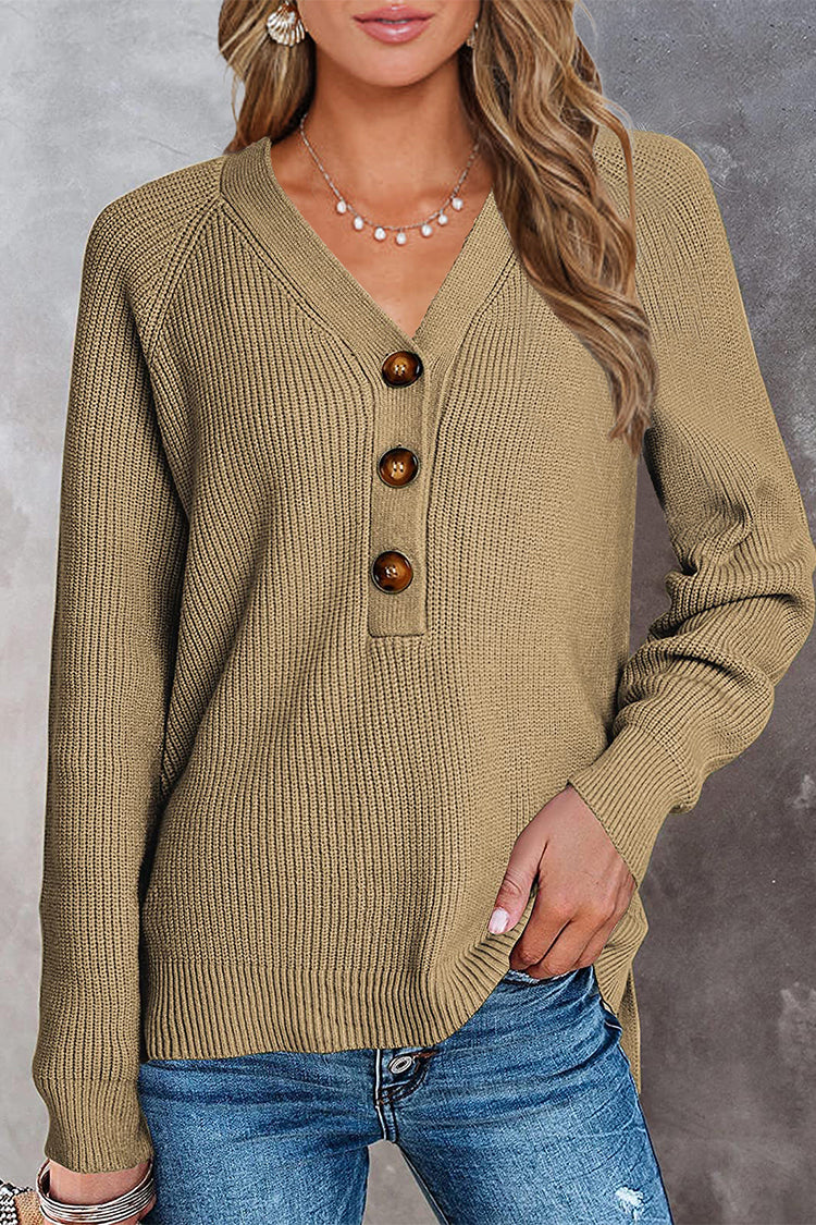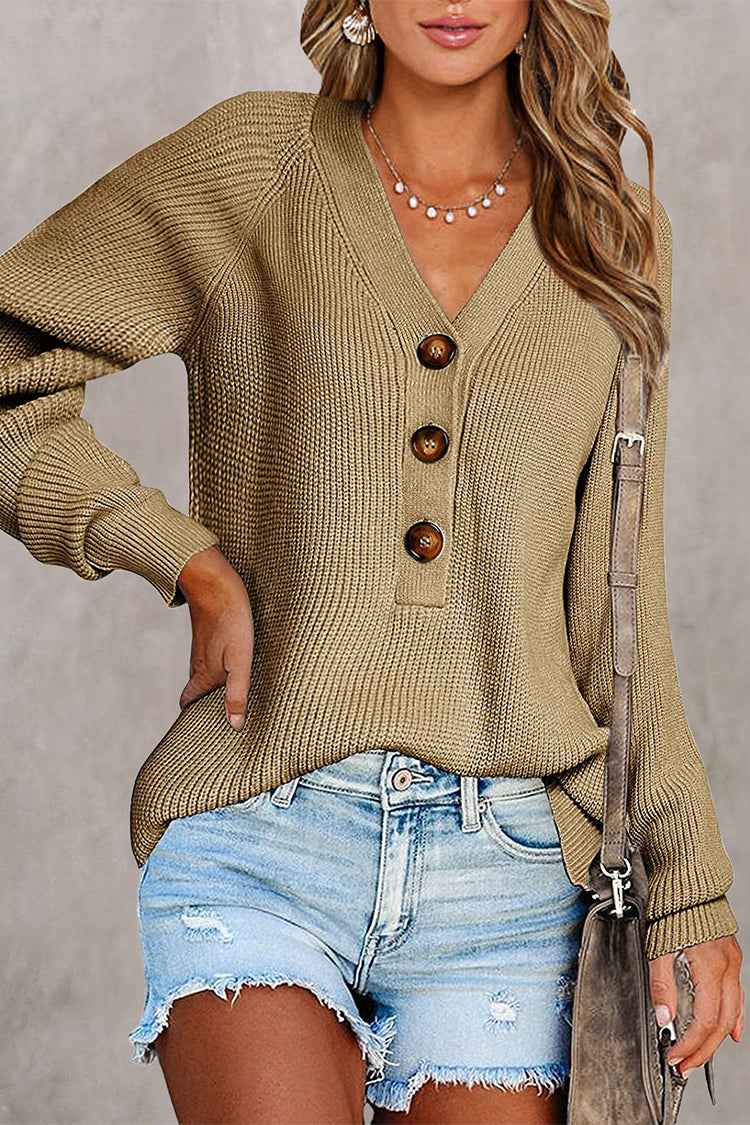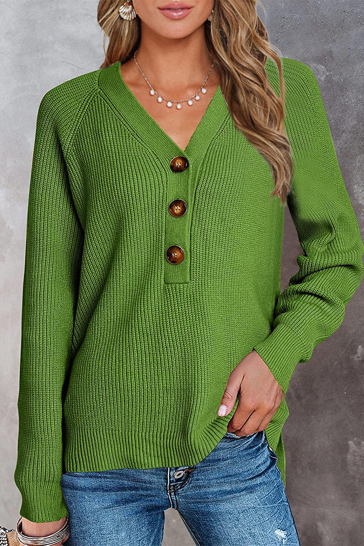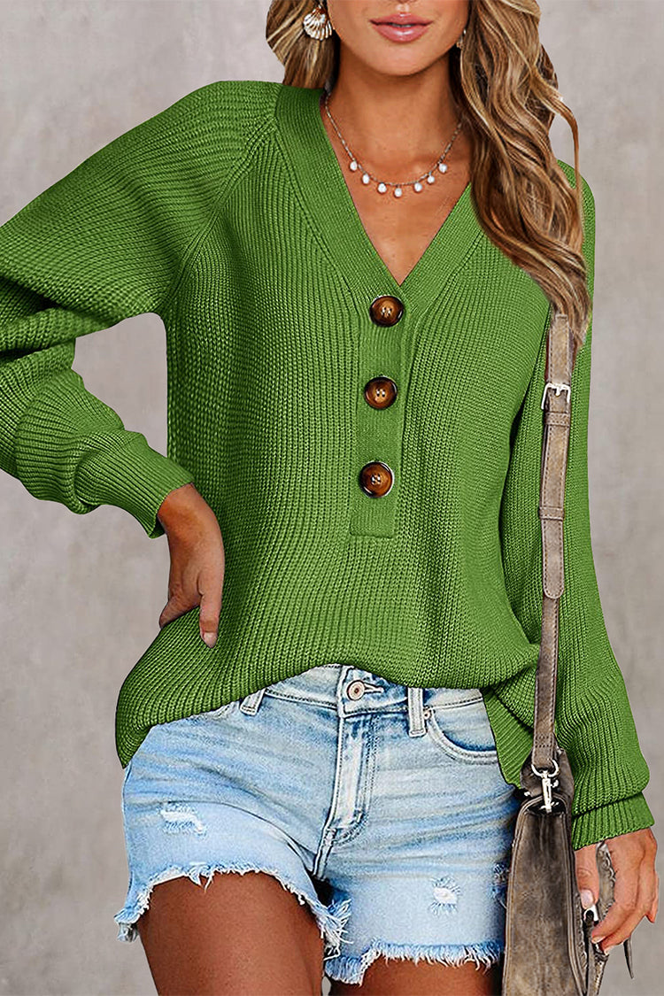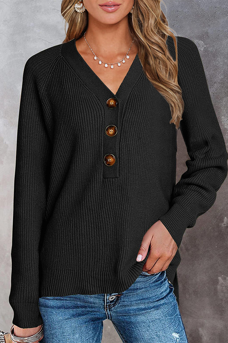 / Half Button Raglan Sleeve V Neck Sweater