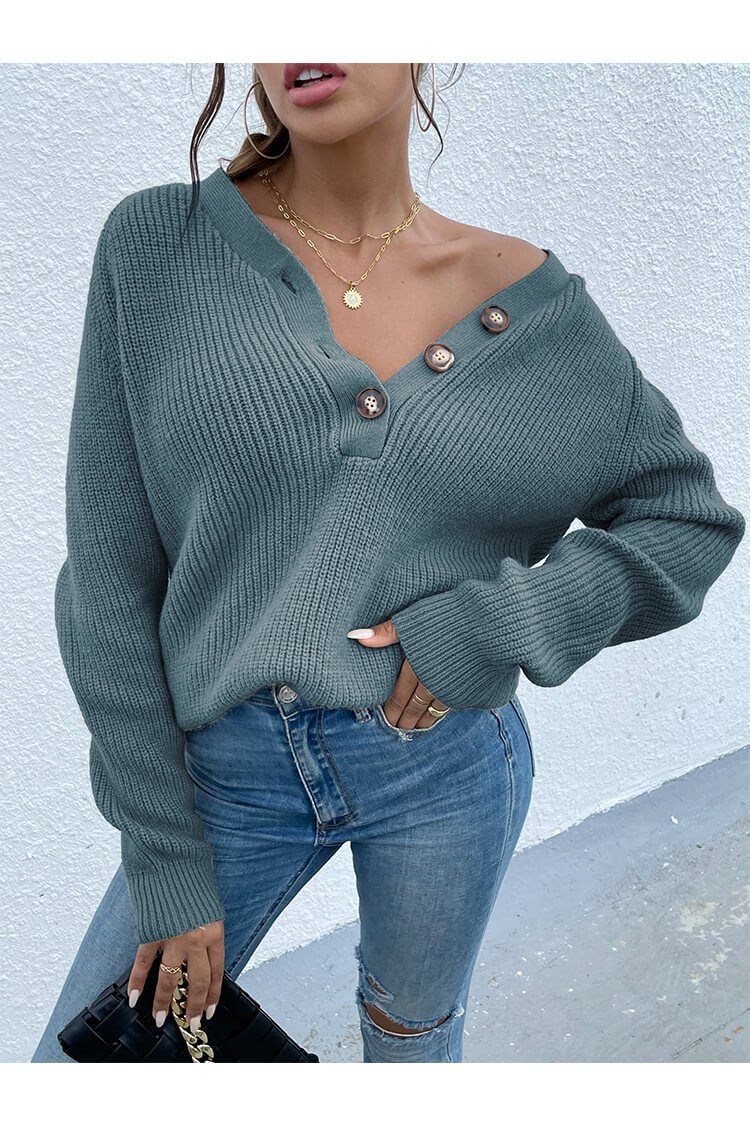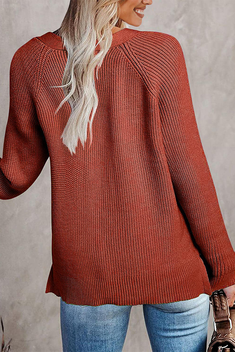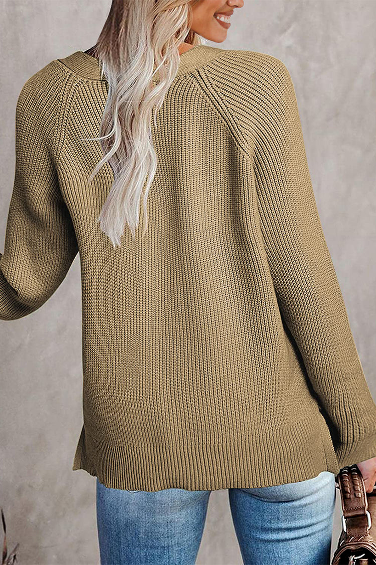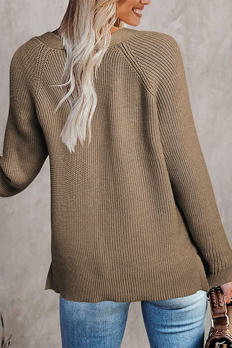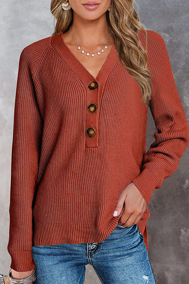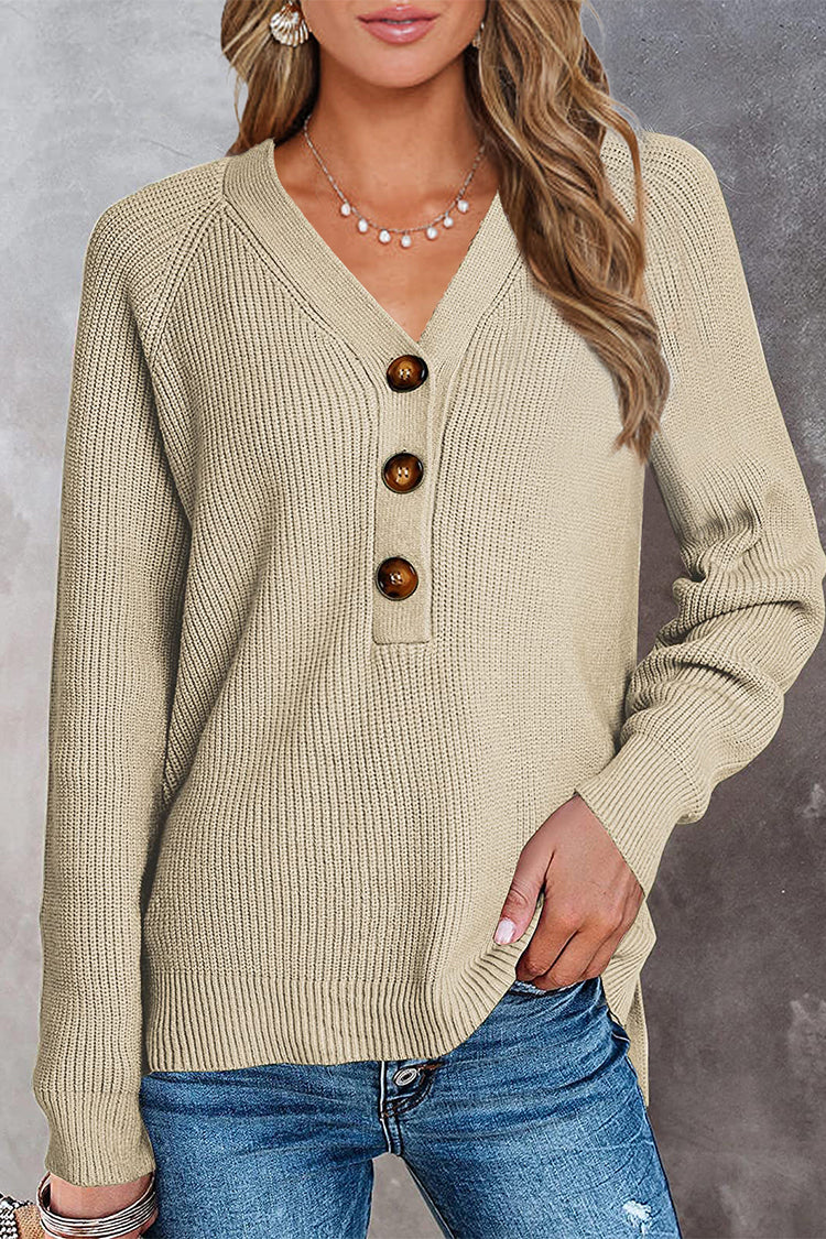 / Half Button Raglan Sleeve V Neck Sweater